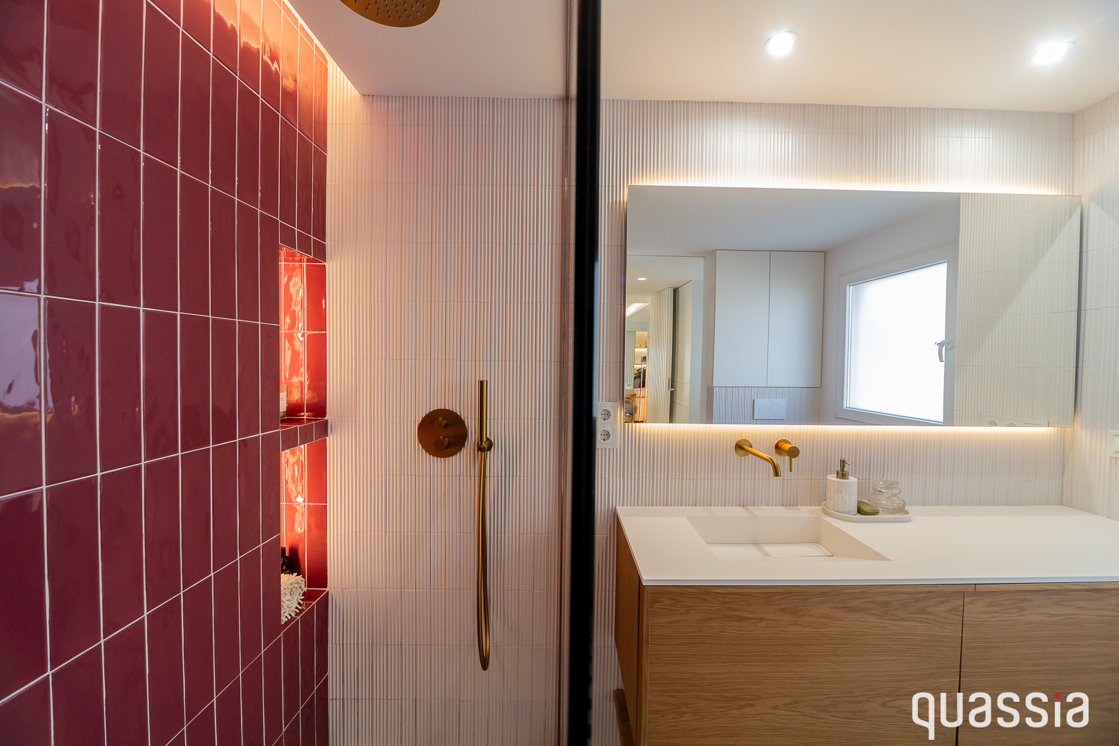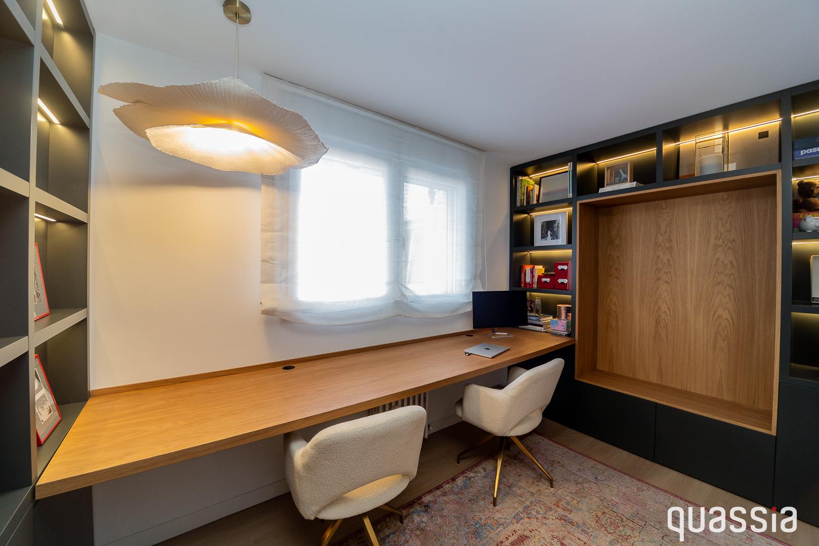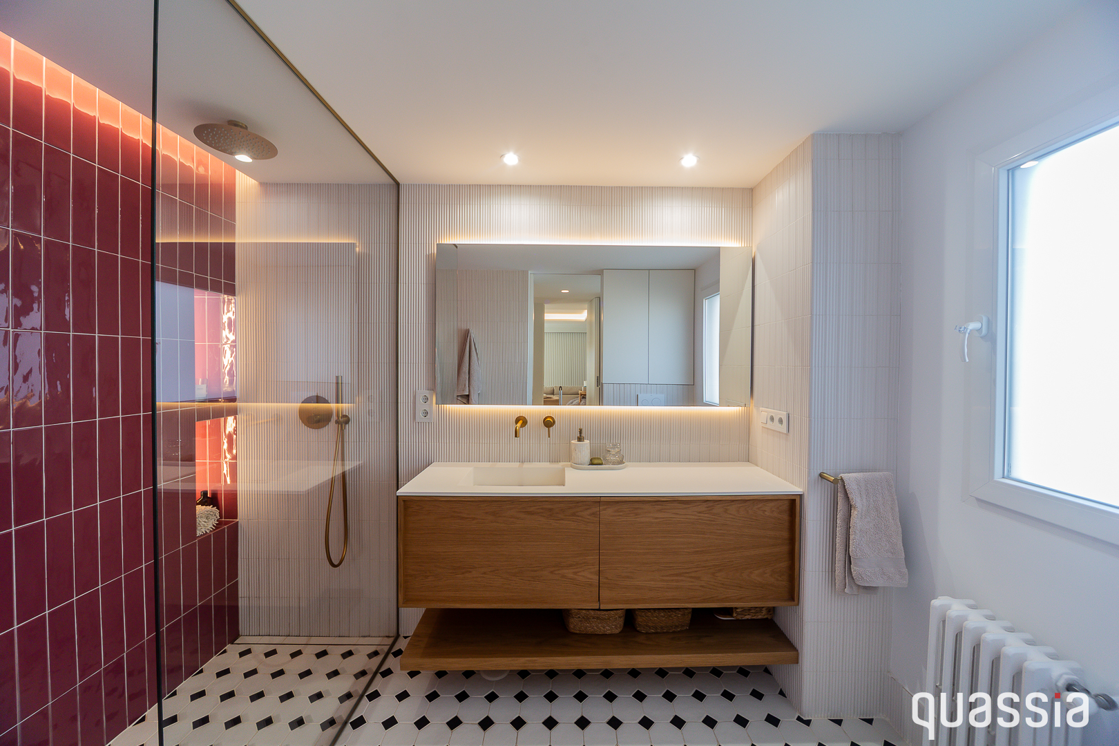 Según diseño de marca, con proyecto y dirección del arquitecto Gabriel Albasini, se desarrolla este espacio lleno de color y dinamismo, abierto a los pacientes. Cobra excepcional importancia el gigantesco muro metálico corredero que separa la zona de recepción de la sala central, así como la solería de chapa de aluminio antideslizante en forma de damero. Las sucesivas divisiones de cristal, el colorido y la amplitud de espacios generan una agradable sensación que permite combinar perfectamente el minimalismo con lo divertido. Merece la pena pasarse a verlo y, de paso, ponerse a punto y perder unos kilitos de la mano de su estupenda farmacéutica y especialista en nutrición.